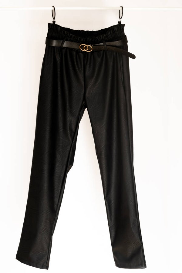 Net even anders met deze gave leatherlook pants! Deze pants heeft een stoere uitstraling, warme binnevoering, leuke riem en een elastische band om de middel en broekspijpen. Leuk te combineren met t-shirt Sophia en jas Molly. Ga jij voor deze stoere look?